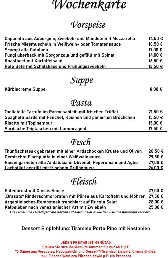 *Fisch- und Fleischgerichte finden Sie auf unsere Wochenkarte*